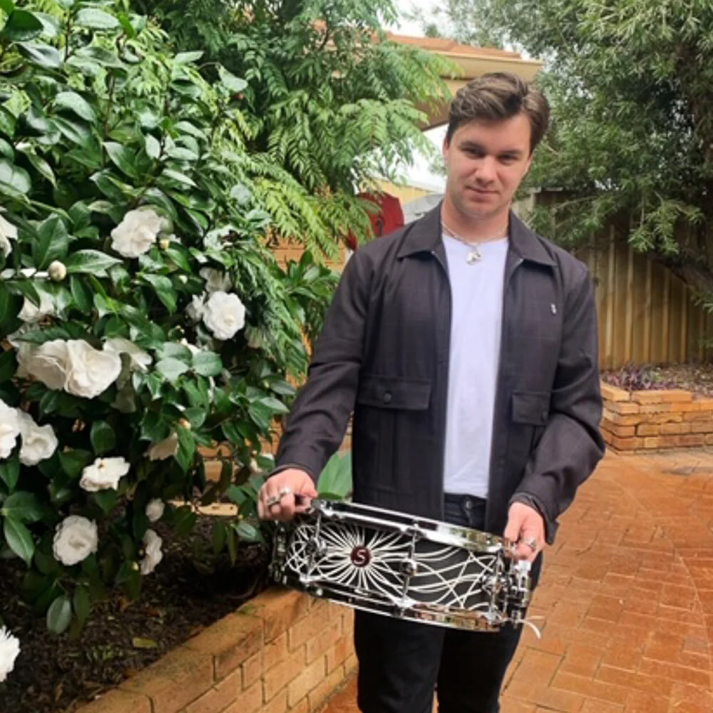 My name is Hamish and I live in Perth Western Australia. I am the drummer in my band Death by Denim (@deathbydenim). Since the end of last year I became a full time carer for my Dad between the times he has been in and out of hospital. Fortunately, he has returned home over the weekend, still under my care and is doing much better! Recently my beautiful girlfriend Moni and I bought a 10 week old kitten named Mila to join us on this journey of life. I’m extremely grateful for people such as Jefferson who not only make incredible instruments for us drummers but also actively finds ways to encourage, bless and make some of the tougher times a little more enjoyable!
